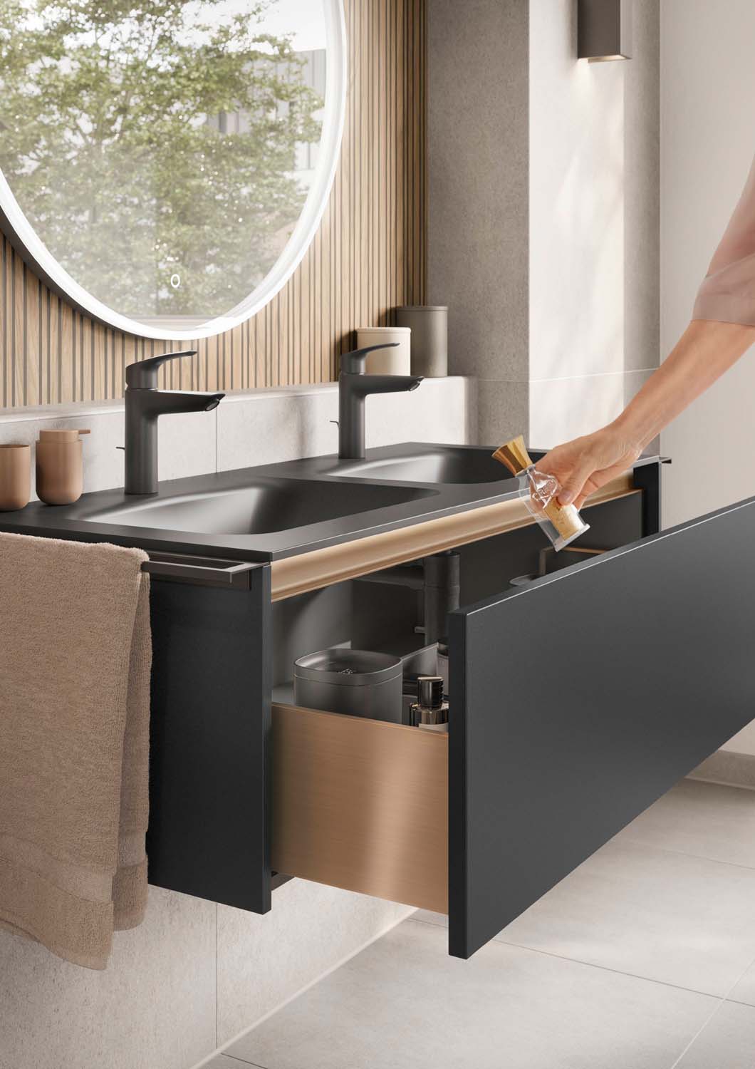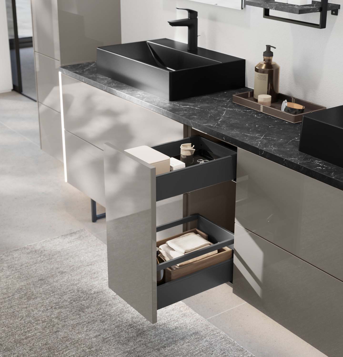 Unsere Badmöbel überzeugen durch hochwertige Verarbeitung und langlebige Materialien. Von massiven Fronten bis zu pflegeleichten Oberflächen – jedes Detail trägt zur Wertigkeit und Beständigkeit Ihres Badezimmers bei.